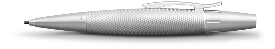 Faber Castell e-motion pure silverRobustos, casi en forma de puro, con cálidos toques, los utensilios de escritura e-motion se acomodan cómodamente en la mano. El diseño combina una comodidad de escritura excepcional con una estética sofisticada. Los materiales fueron cuidadosamente seleccionados: metal mate o brillante en combinación con madera de arce claro o peral en marrón oscuro, marrón o negro. Los barriles de resina preciosa presentan un diseño de cocodrilo, texturas de madera de rombos. Junto con los elementos cromados brillantes, crean un objeto simplemente hermoso.