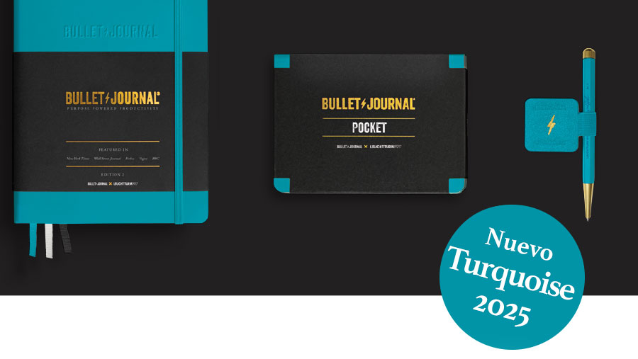 Junto con el diseñador de productos con sede en Nueva York, Ryder Carroll, y la comunidad global de Bullet Journaling, LEUCHTTURM1917 continúa la historia de éxito del Bullet Journal® original. Cada año surge un producto fruto de la fusión consciente entre la planificación analógica y el intercambio creativo, moldeado por las necesidades cambiantes de la comunidad.En celebración del Día Internacional del Bullet Journal el 8 de agosto de 2025, la colección Original Bullet Journal® se amplía una vez más con un nuevo color, elegido en colaboración con la comunidad global de Bullet Journal®: Turquoise25. Este tono vibrante y refrescante representa claridad, creatividad y nuevas perspectivas, valores que se alinean perfectamente con el espíritu del Bullet Journaling.