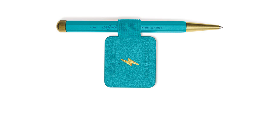 Turquoise25 estará disponible el galardonado Drehgriffel Nr. 1Bolígrafo de gel fabricado en latón y aluminio de alta calidad con punta de cerámica para un trazo de 0,5 mm.