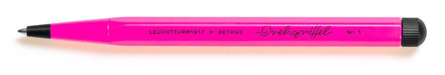 La edición limitada Luminous del icónico Drehgriffel Nr. 1 está inspirada en el estilo del Pop Art y combina el diseño preciso de Leuchtturm1917 con la creatividad audaz y la riqueza cromática de Bethge. Inspirado en iconos como Warhol y Lichtenstein, cada bolígrafo es una declaración moderna de fuerza expresiva, individualidad y libertad creativa. Disponible en cuatro colores neón con un acento negro, cada Drehgriffel Nr. 1 de la edición limitada Luminous es mucho más que un instrumento de escritura: es un objeto de diseño que combina artesanía, calidad e inspiración artística.Leuchtturm Drehgriffel Nr. 1 Edición Luminous - Rosa -