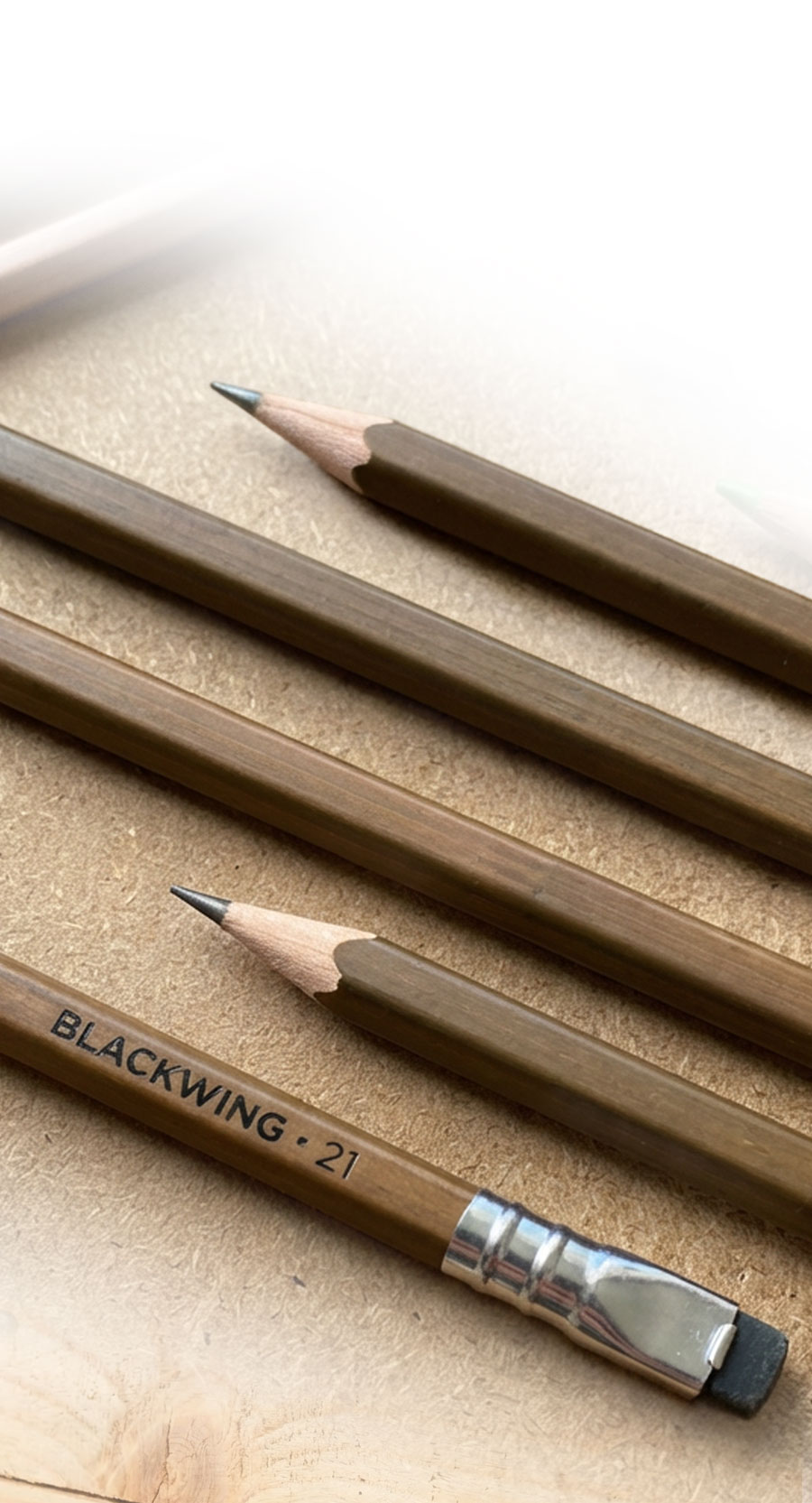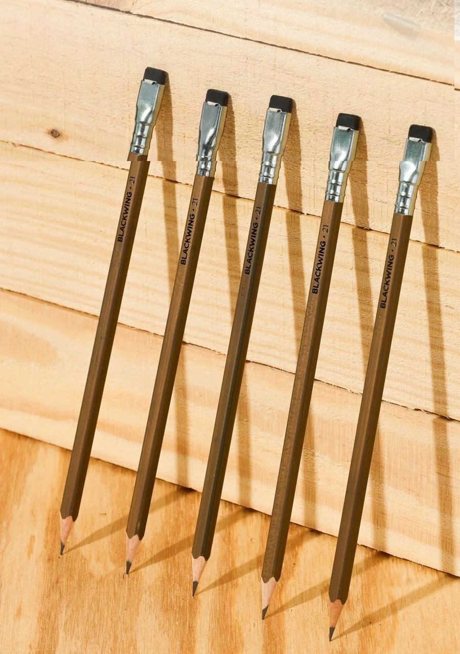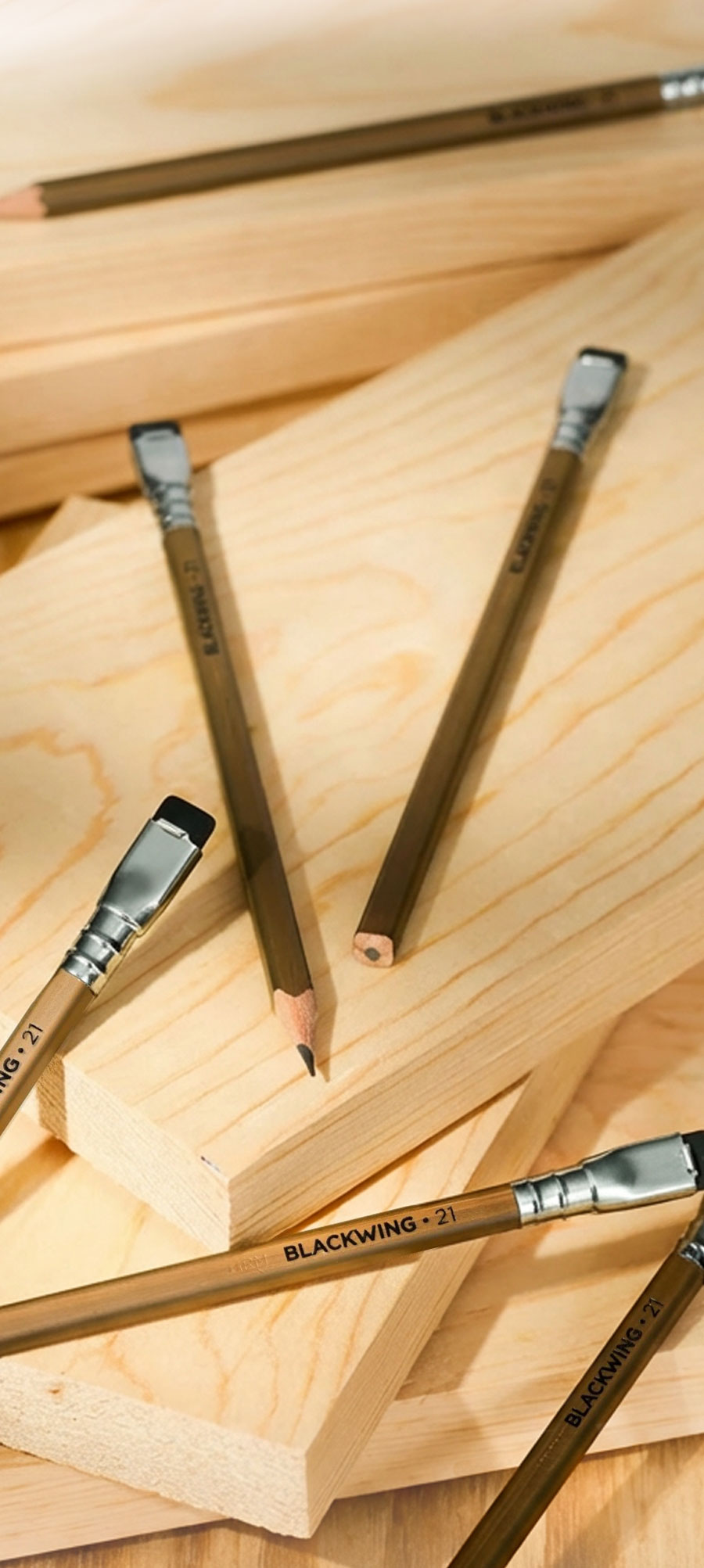 El Blackwing 21 es nuestro homenaje al oficio de la carpintería. Cada lápiz está hecho con listones especiales de articulación de dedo creadas combinando dos listones cortos juntos. También cuenta con nuestro primer barril cuadrado con una cara extra ancha para que puedas ver las articulaciones de los dedos en cada lápiz. El número 21 representa la sabiduría de "medir dos veces, cortar una vez". El grafito firme del lápiz es perfecto para medir y marcar líneas de corte, y luego medirlas de nuevo.