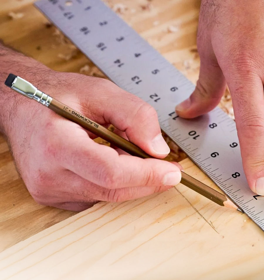 Blackwing 21 es nuestro homenaje al oficio de la carpintería. Cada lápiz está hecho con listones especiales para articulaciones de dedos y cuenta con nuestro primer barril cuadrado. El grafito firme del lápiz es perfecto para medir y marcar líneas de corte, y luego medirlas de nuevo. Los Shakers eran carpinteros expertos que veían belleza en la utilidad de las cosas que hacían. Formas simples, carntería sólida y materiales sin adornos fueron la base del diseño de Shaker. Su compromiso con la artesanía, los materiales y la simplicidad de la forma inspiraron a generaciones de carpinteros, dentro de sus comunidades y más allá.Hoy en día, la carpintería es un ejercicio de precisión, intuición y atención plena. El adagio "mida dos veces, corte una vez" anima a los carpinteros a reducir la velocidad, estar presentes y tomar decisiones con propósito. Una buena regla para la carpintería y una buena regla para la vida.