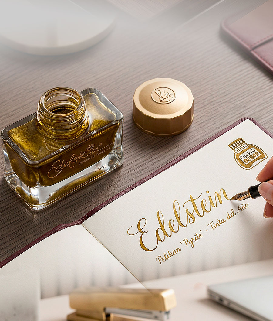 La edición Edelstein® Ink of the Year 2026 de Pelikan, denominada Pyrite, captura el sofisticado encanto del mineral homónimo a través de un distintivo matiz gris metálico con destellos dorados. Esta formulación de alta gama es más que una simple tinta; es un tributo a la "piedra del sol" que ha fascinado a la humanidad por siglos. Diseñada para escritores exigentes, esta tinta ofrece una profundidad excepcional y una luminosidad sutil que cobra vida sobre el papel.Como parte de la célebre serie anual de Pelikan, la variante Pyrite cuenta con componentes especiales que garantizan un flujo extraordinariamente suave y el cuidado óptimo del plumín. Su paleta de colores —que simboliza la vitalidad, la protección y la confianza en uno mismo— eleva la correspondencia personal y la escritura creativa con un aire de lujo discreto. Es la elección definitiva para los entusiastas de las estilográficas que buscan una tinta distinguida, capaz de cautivar mediante un brillo refinado y una elegancia serena en lugar de la mera ostentación.