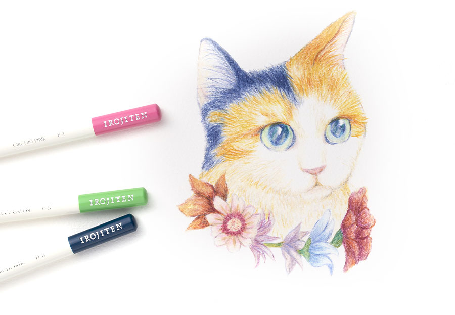 IROJITEN está disponible en 100 colores diferentes. 90 de ellos están disponibles en tres juegos diferentes, con 30 colores cada uno. Estos colores también están disponibles individualmente. Los diez restantes solo están disponibles individualmente.• La consistencia de la mina los hace especialmente adecuados para líneas finas y detalles.