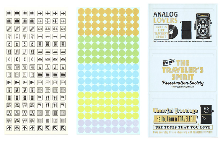 Este es un conjunto de pegatinas para personalizar el cuaderno de su VIAJERO que lo hace más divertido, incluyendo pegatinas de índice y de bolsillo, pegatinas de iconos para representar diferentes planes, transferencia seca y pegatinas para decorar la cubierta. La versión 2026 presenta un diseño inspirado en EL ESPÍRITU DEL VIAJERO.Puede personalizar la cubierta de su lechería 2026 con THE TRAVELER'S SPIRIT. ¡Esperamos que tenga un buen viaje con su cuaderno TRAVELER'S y THE TRAVELER'S SPIRIT!