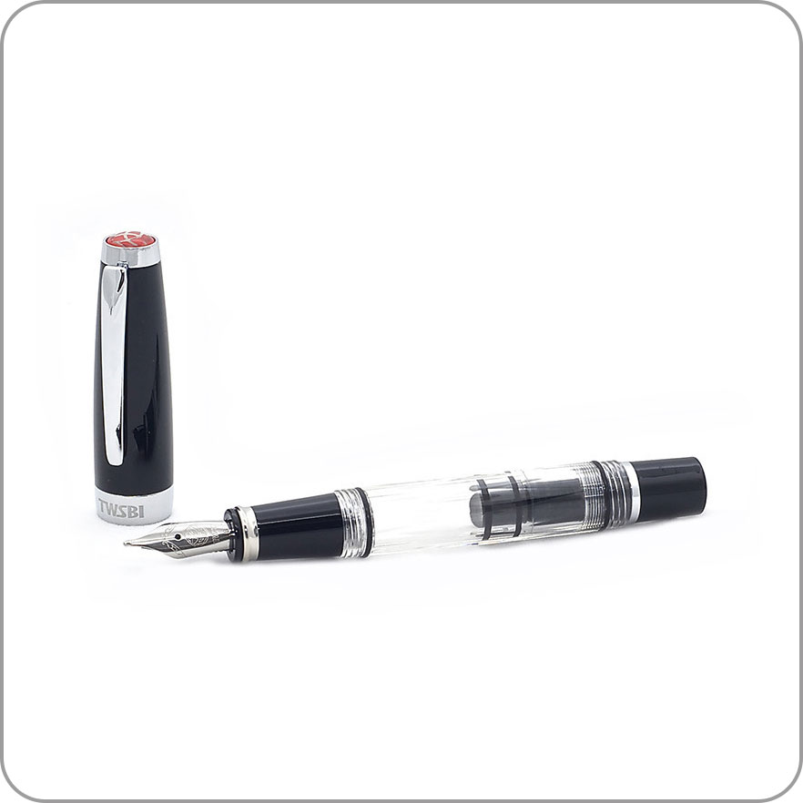 TWSBI es conocida por su alta calidad a buen precio, ya que ofrecen mecanismos de llenado avanzados que generalmente se reservan para plumas estilográficas de alta gama.Twsbi Diamond Mini Classic realizada en resina ABS transparente, que te permite visualizar el mecanismo interior de la pluma estilográfica y la cantidad de tinta disponible, se combina con el color negro del capuchón con acabados y plumín cromados.