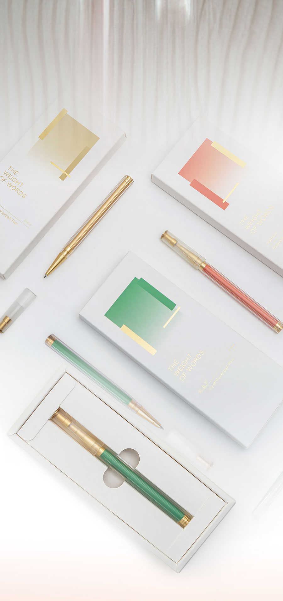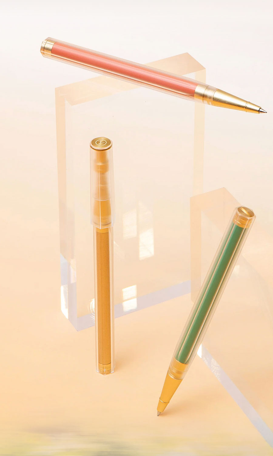 Clear Orange, Clear Green y Brass Gold: tres plumas semi–translúcidas con acabado mate que representan el minimalismo característico y la artesanía refinada de YSTUDIO.La superficie mate suaviza cada tono y deja entrever el cálido brillo del cuerpo de latón que se oculta bajo la capa de color. Inspirado en los paisajes cambiantes de Taiwán —la niebla del amanecer, el resplandor del crepúsculo y la luz suave del día— este diseño revela una elegancia sutil y llena de matices, evocando la belleza silenciosa de la naturaleza.